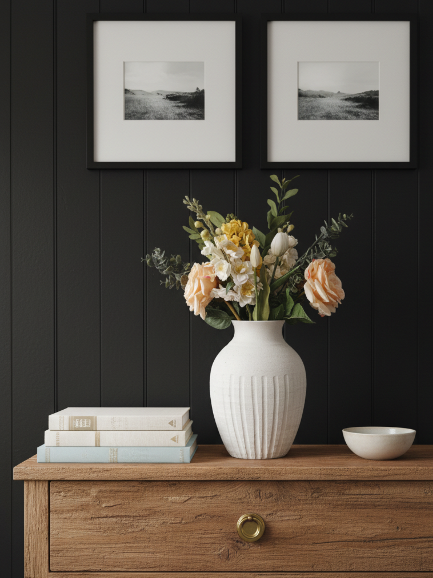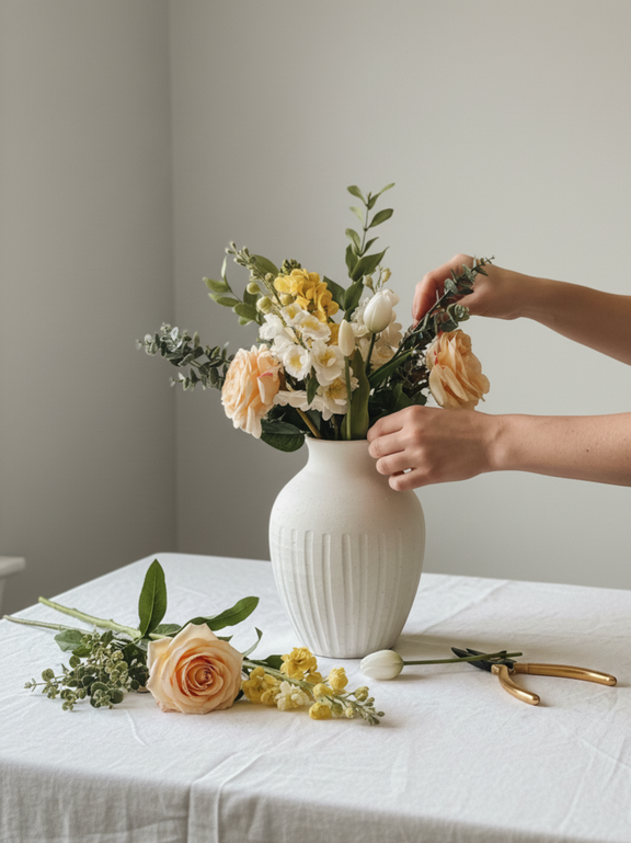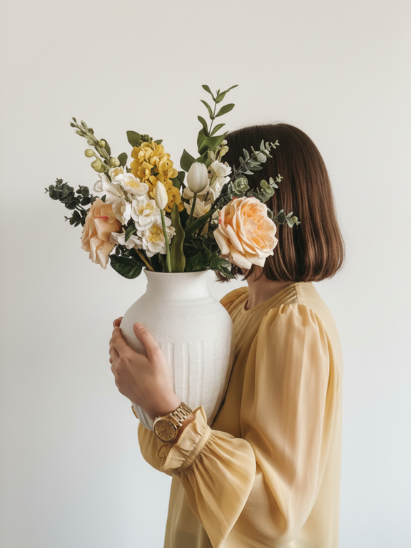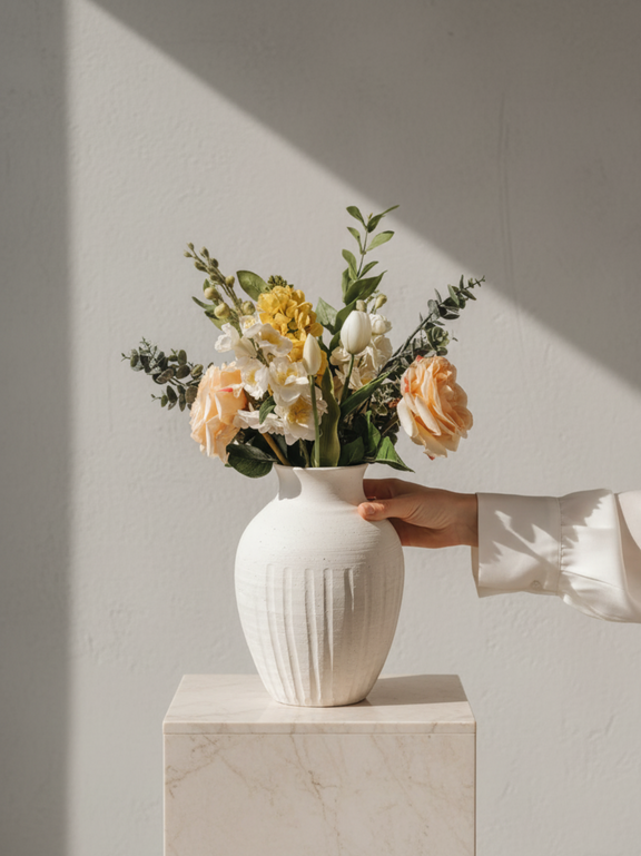 Incluye un macetero de cerámica que complementa su estilo fresco y atemporal.