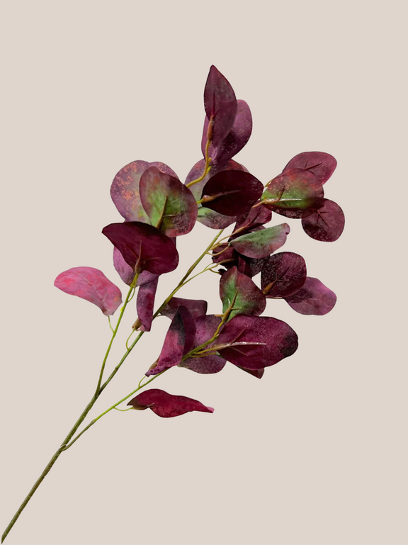 La Hoja Gumdrop Eucalyptus, con su color burgundy profundo, aporta un aire cálido y elegante a cualquier arreglo o espacio. Su forma redondeada y tamaño compacto permiten sumar volumen y textura con un estilo otoñal, ideal para crear ambientes acogedores y con carácter, sin necesidad de mantenimiento.